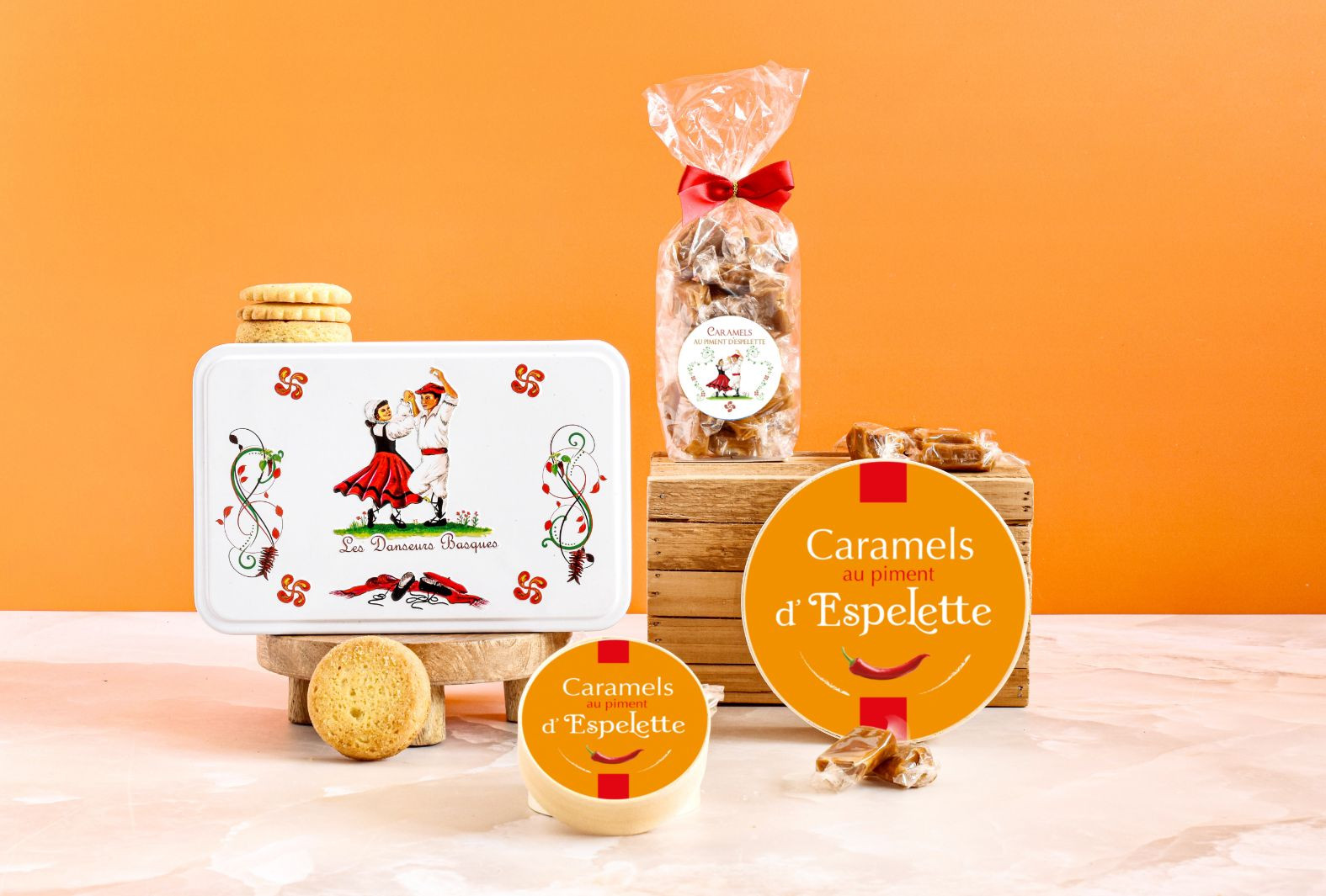 Boîte sucre Saint Jean Pied de Port rivière assortiment palets et galettes