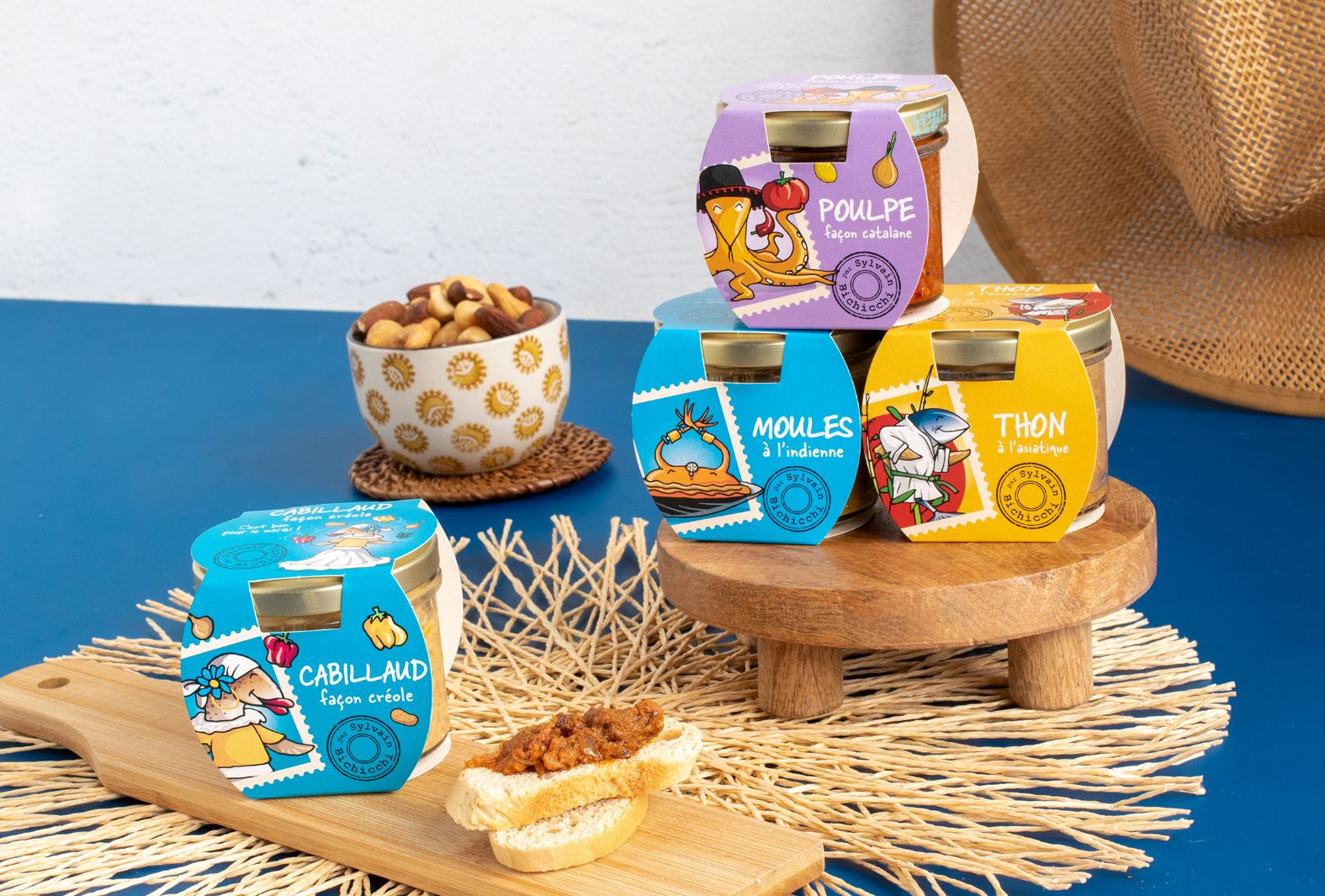 Terrines de viande, de poisson, végétales, recettes du monde et craquines apéritives : une gamme salée variée et pleine d’humour, idéale pour dynamiser vos rayons ou composer des coffrets cadeaux originaux.
